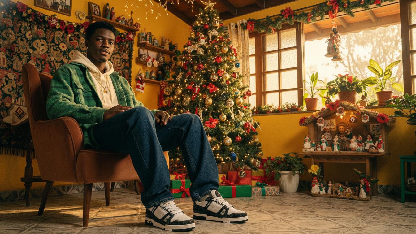 Modelo feminina vestindo streetwear e calçando New Balance, representando a coleção completa da marca no banner promocional Modelo feminina vestindo streetwear e calçando New Balance, representando a coleção completa da marca no banner promocional